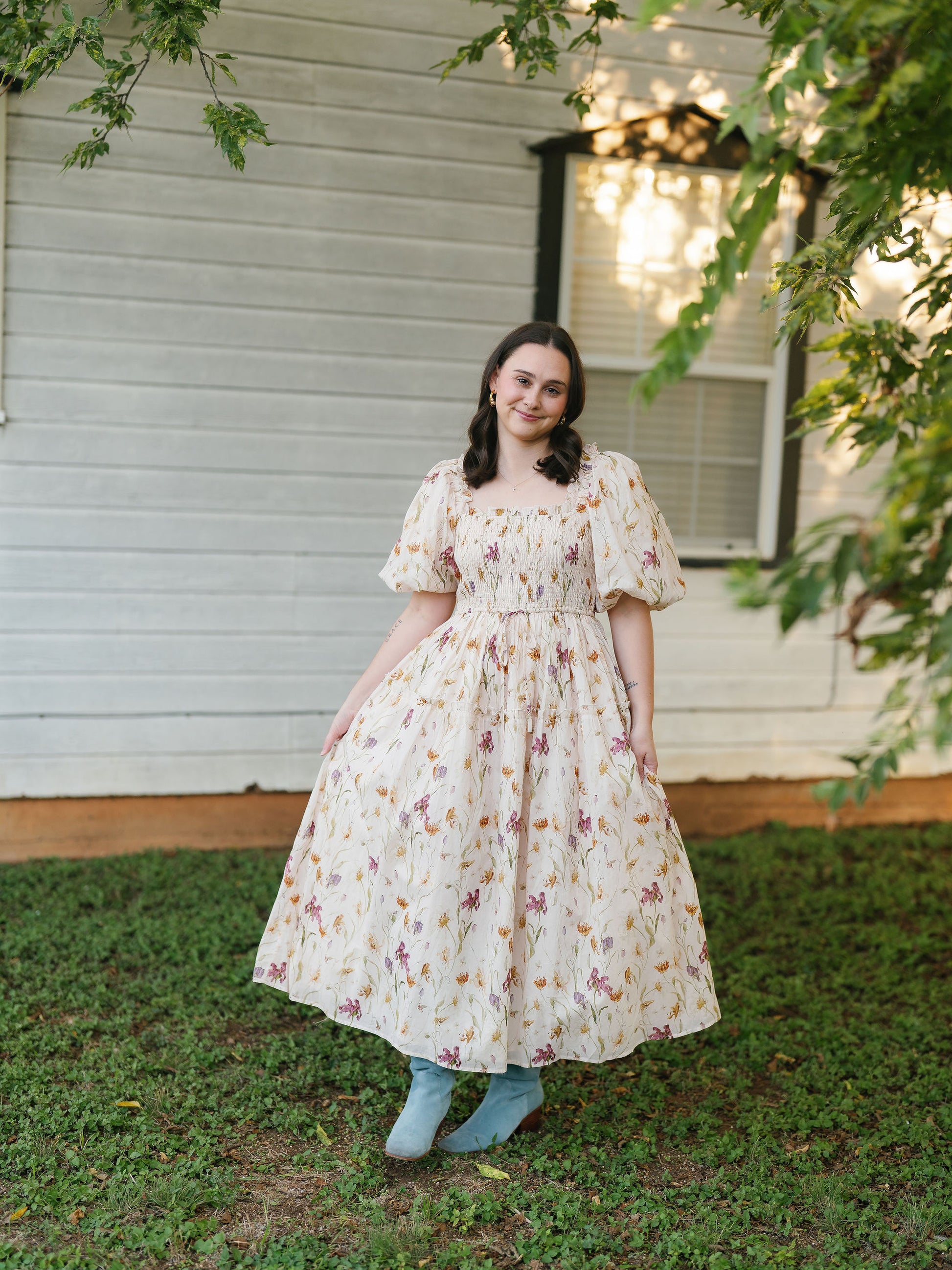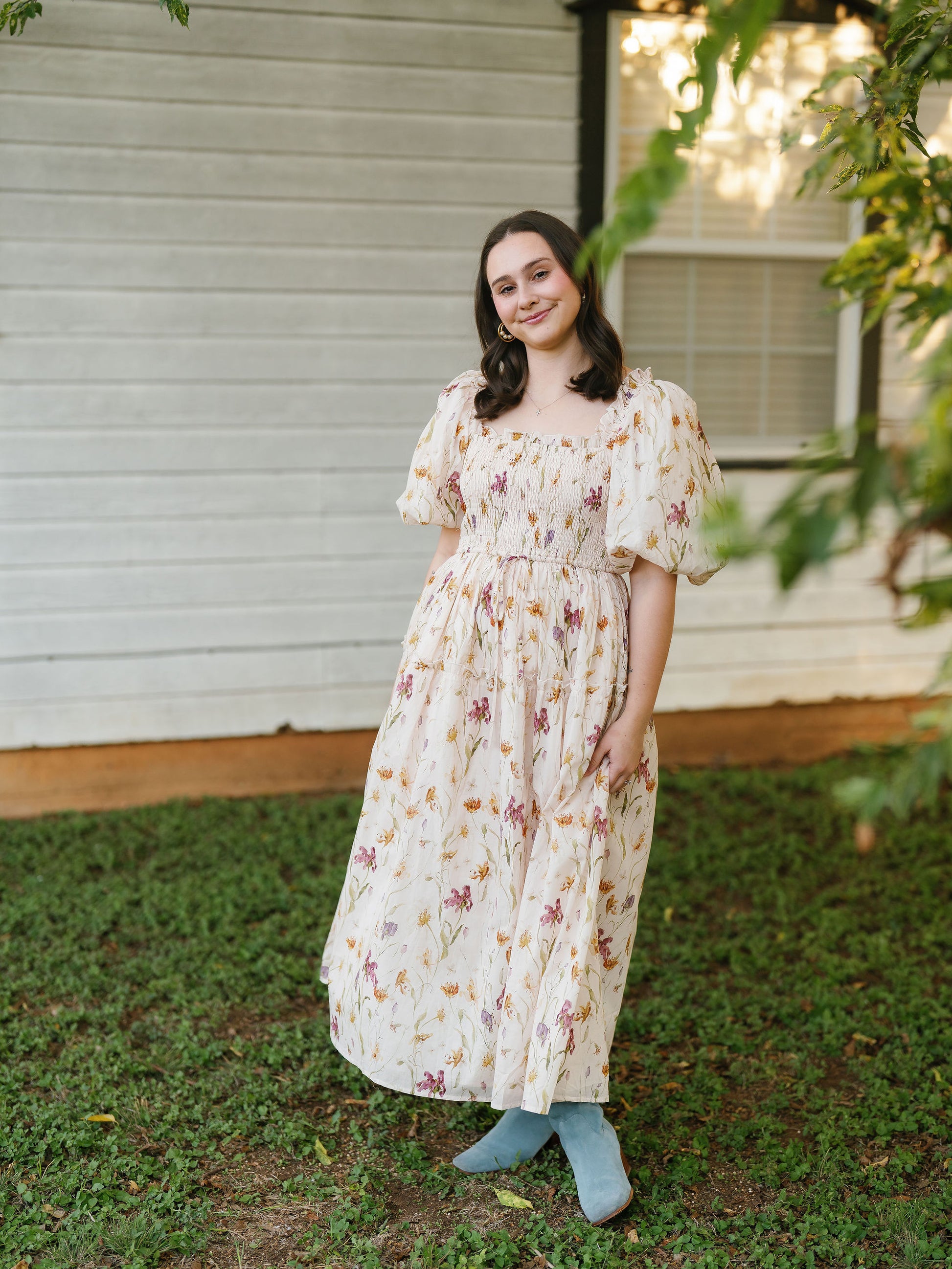 The Kayle dress is a beautiful smocked waist, puff sleeve dress with an adjustable waist. Fit is slightly oversized, so size down if in between sizes!