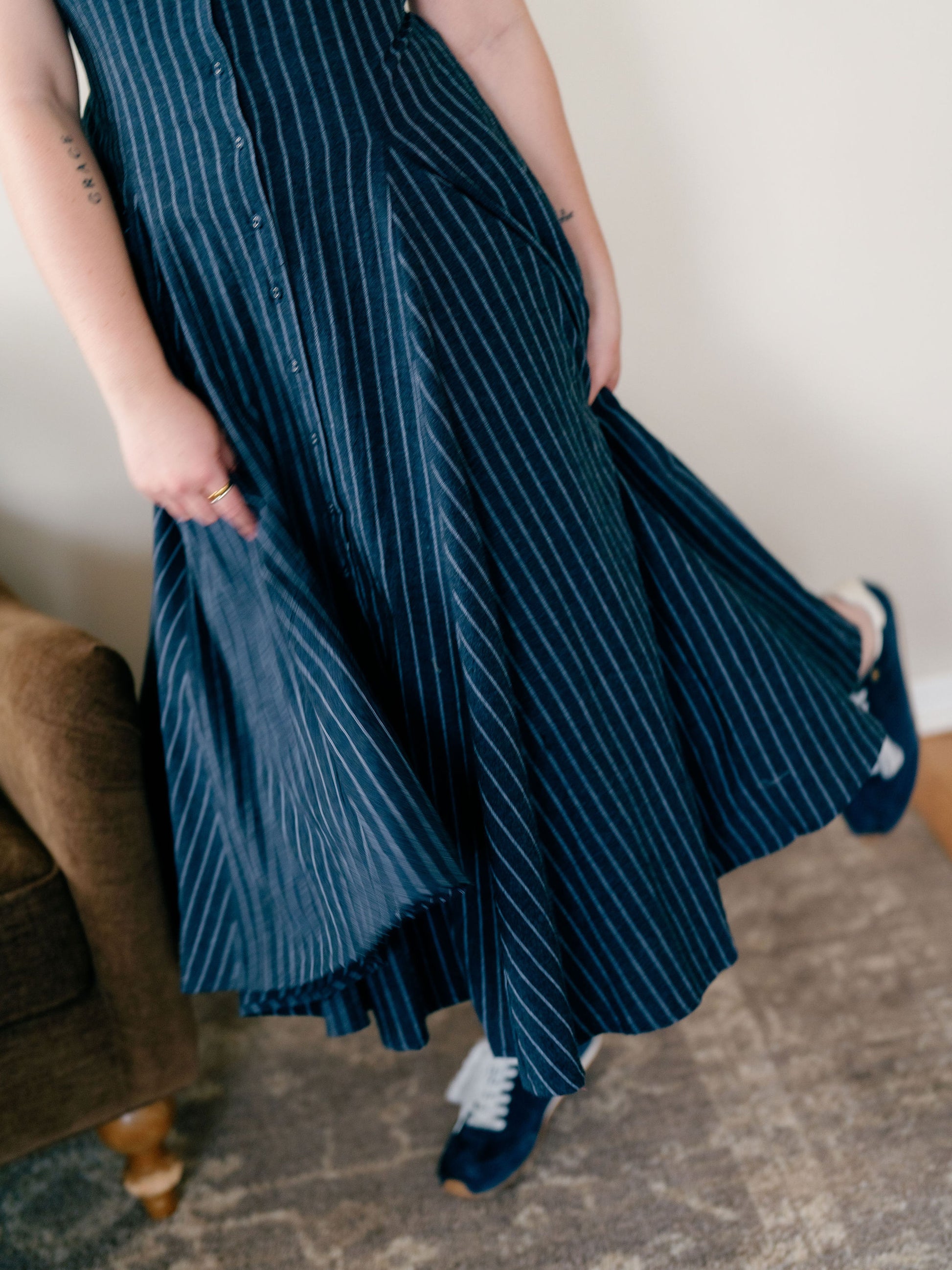 The Victoria dress has so many fun details that just make for the cutest midi dress. Tissue paper pleats at the bottom, dainty buttons, & a tie in the back for extra cinching have made me love this dress! If you have a wider chest or bust I would recommend sizing up!