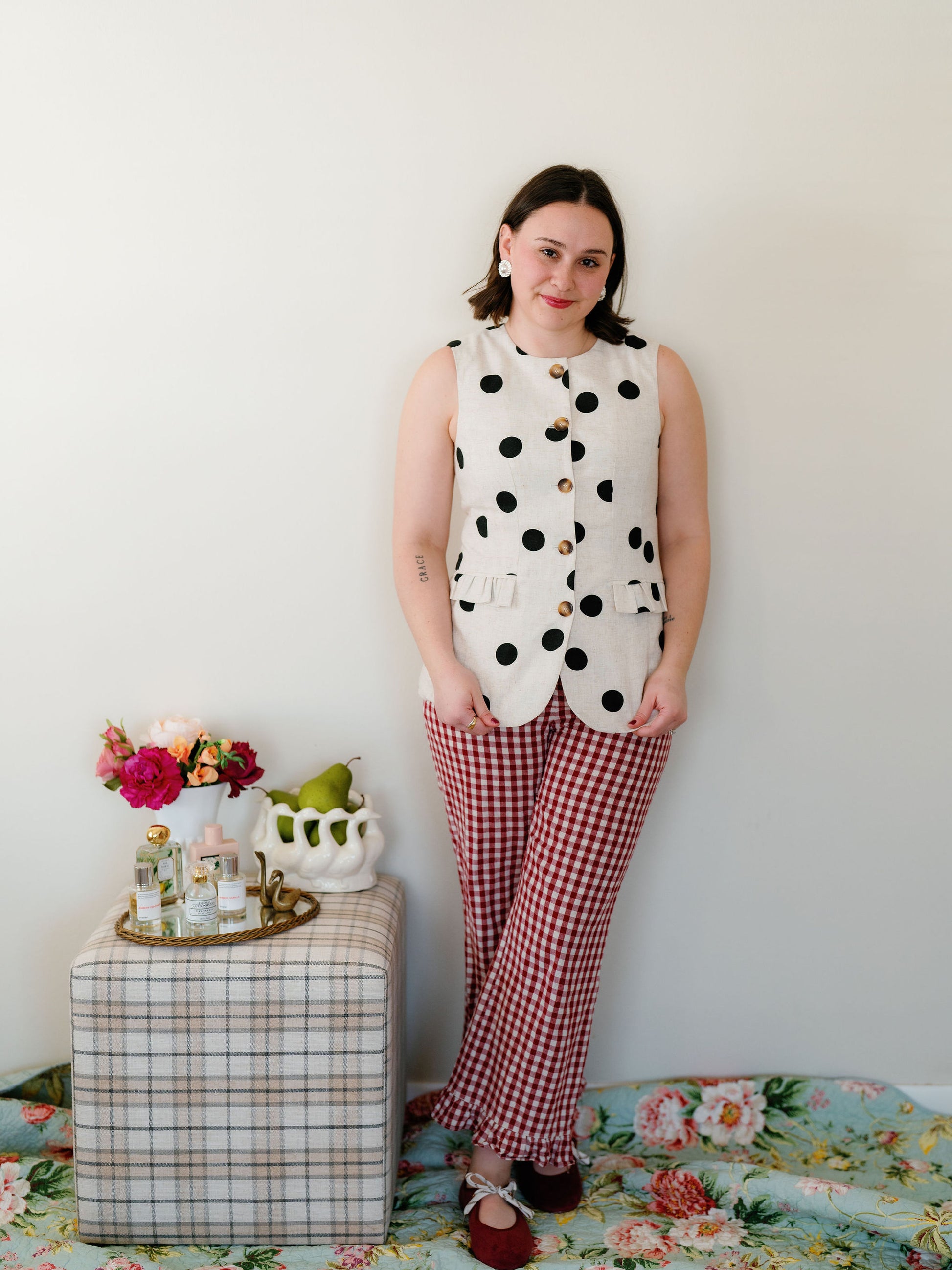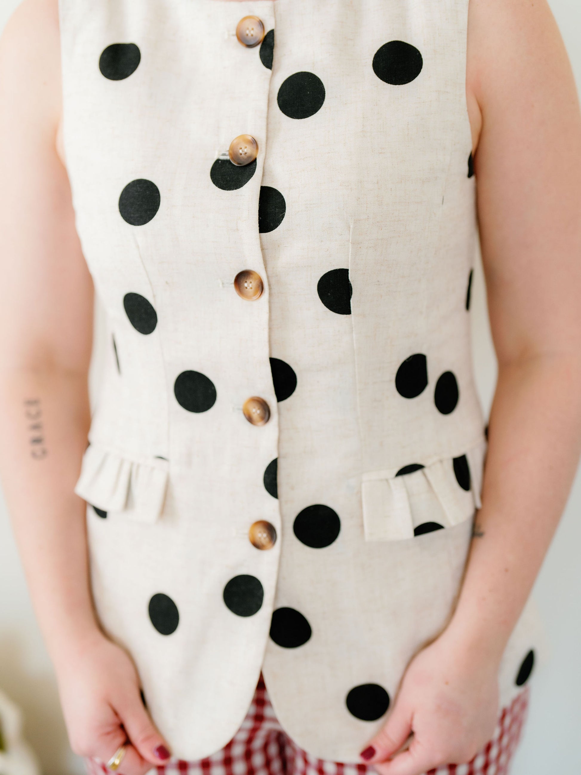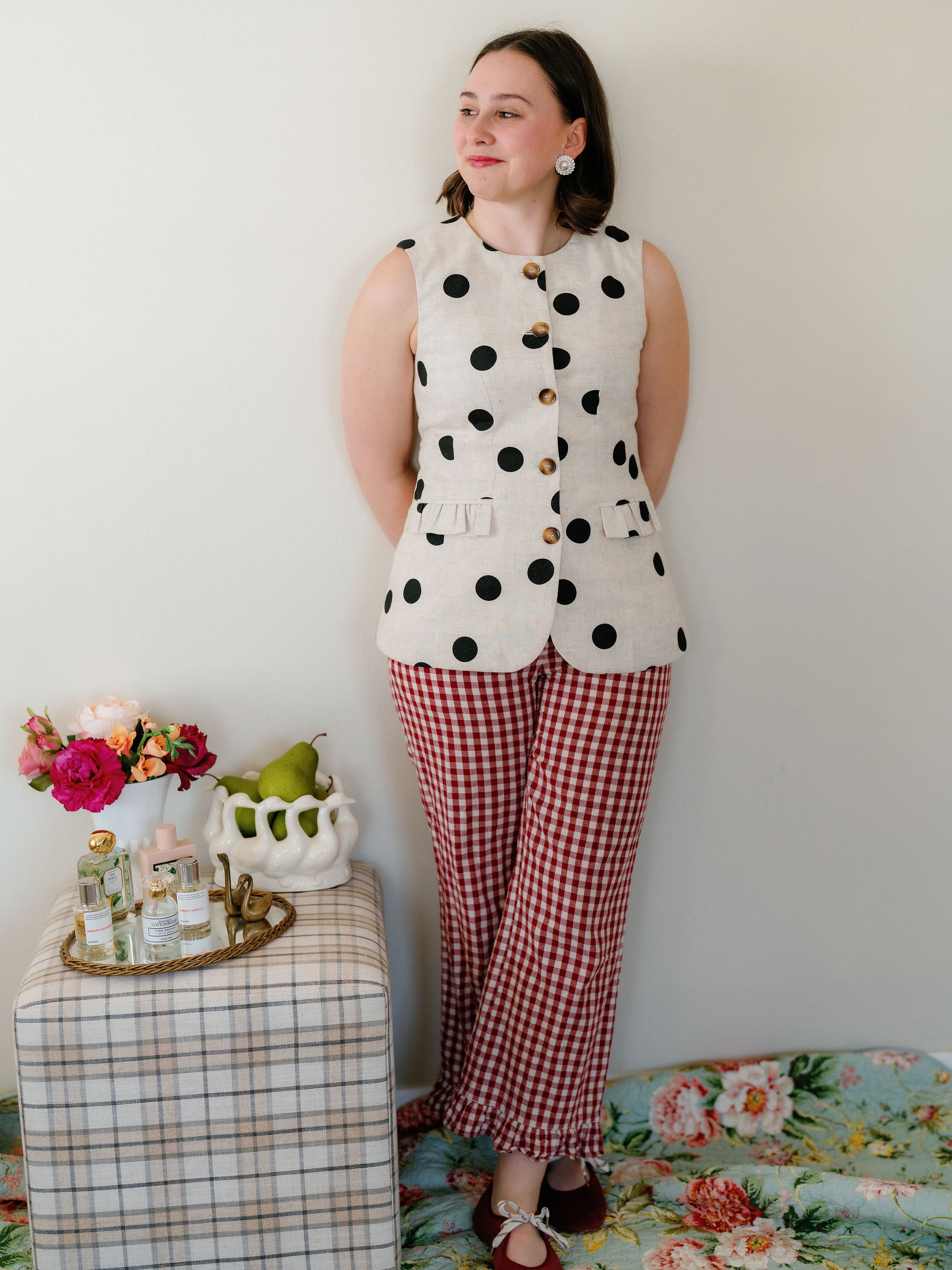 Selma is the prettiest little blazer top with polka dots throughout, precious pocket details and an option to adjust the back. I sized down in this one but you could stay true to size & adjust the back!