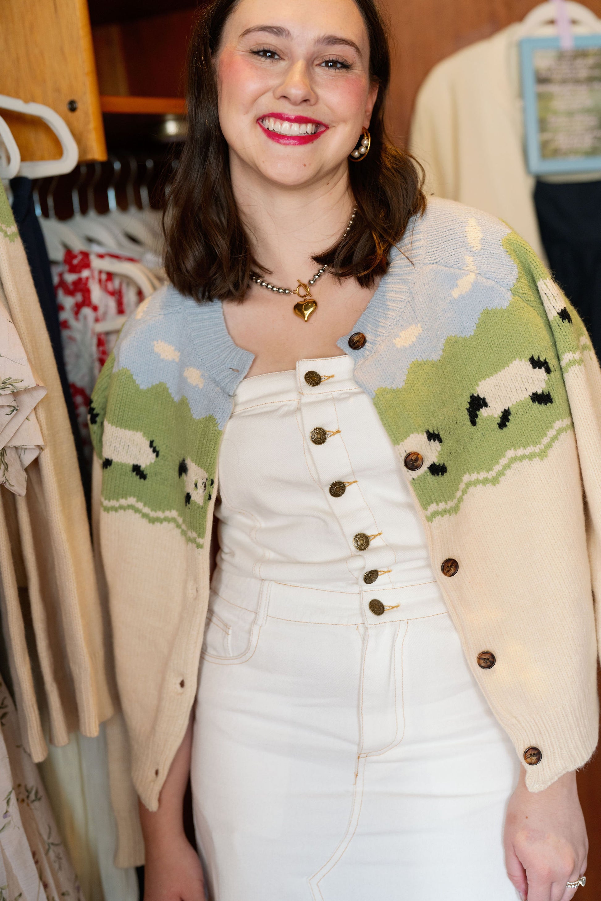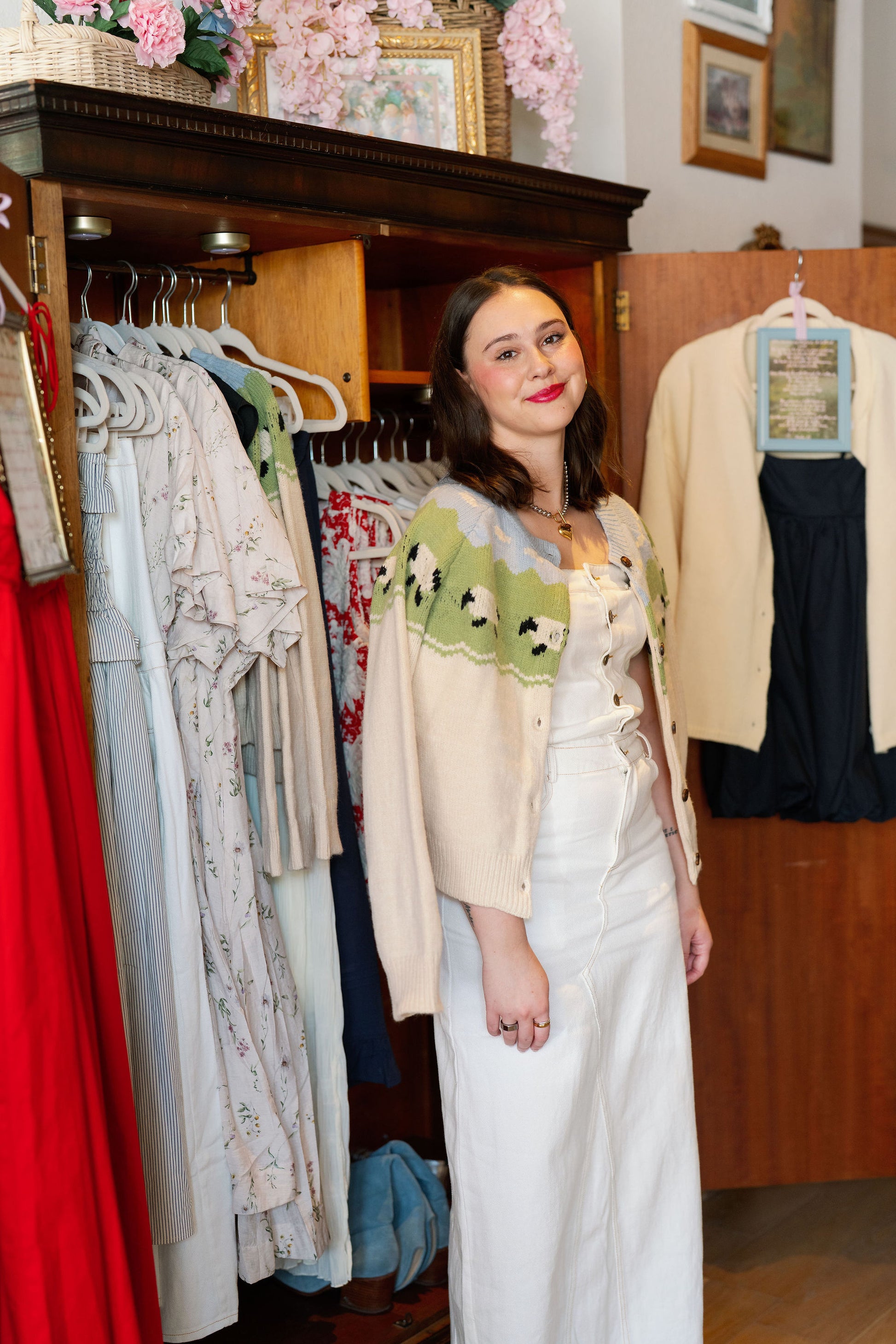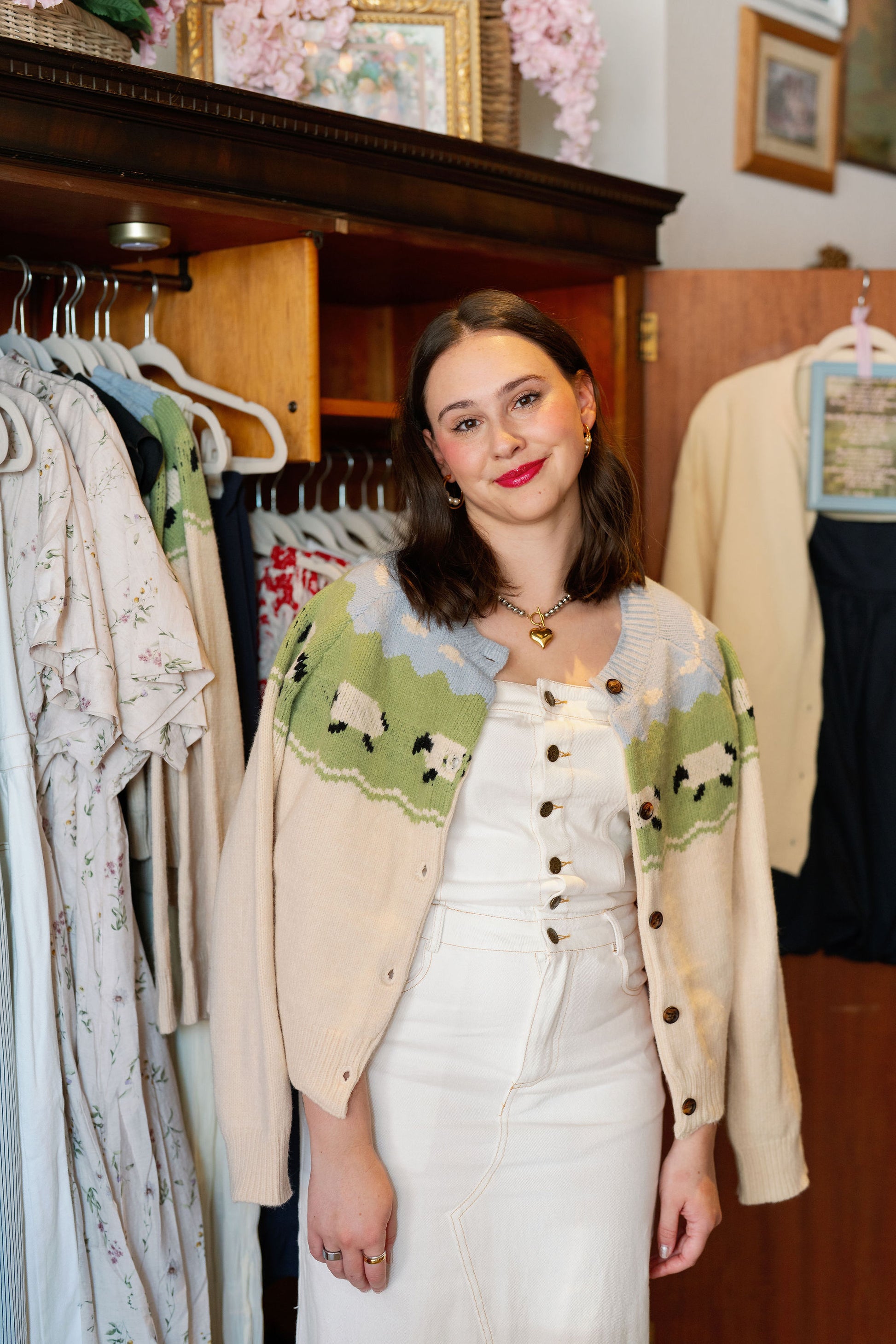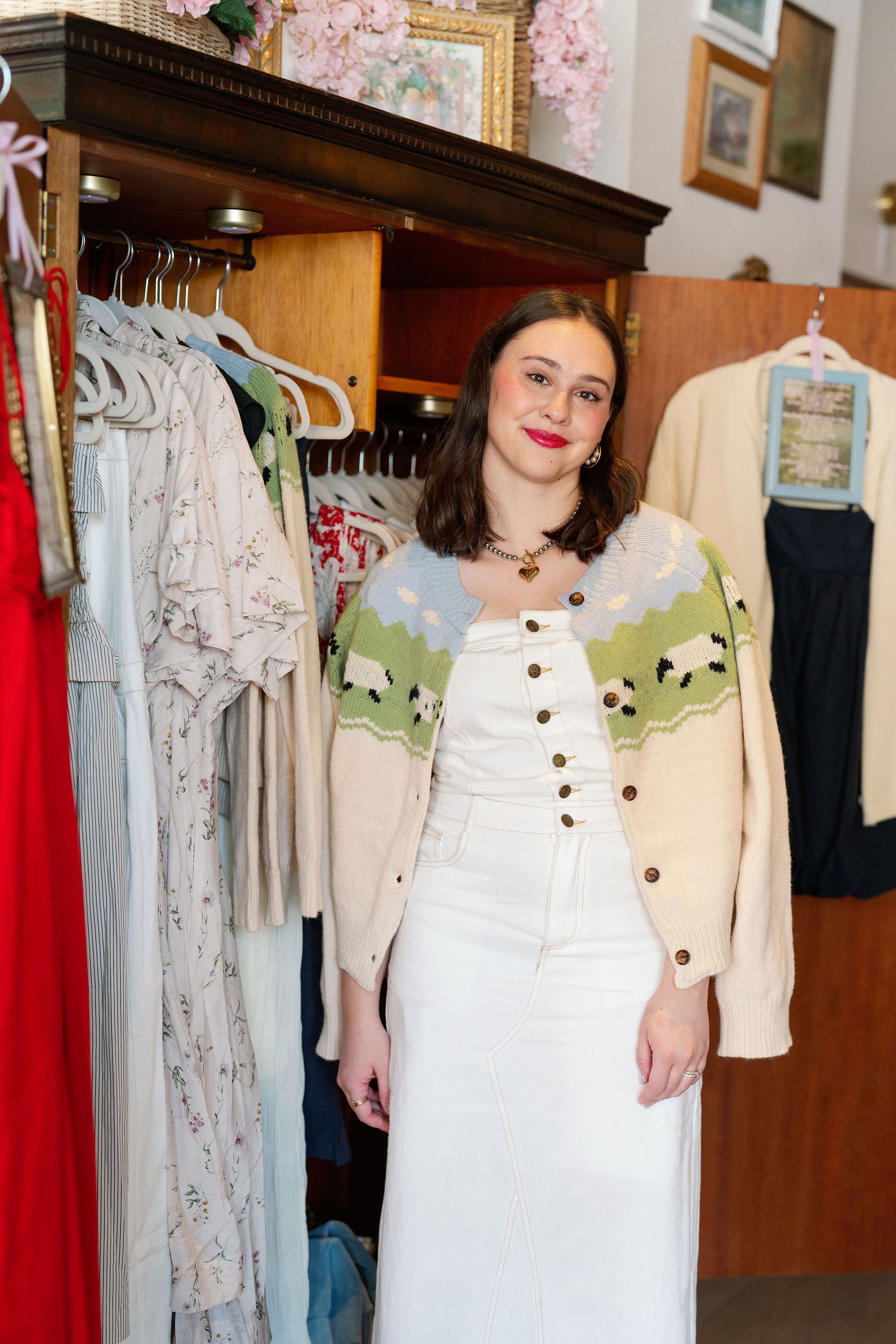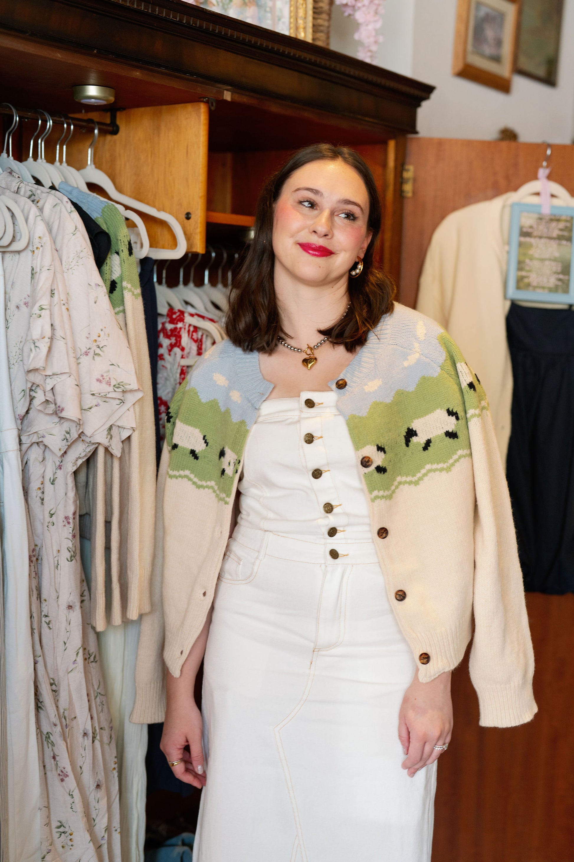 The Corbyn sweater is the cutest little sheep cardigan and I have nothing but good things to say about it. So soft and literally goes with so many things! Size up if you want an oversized look.