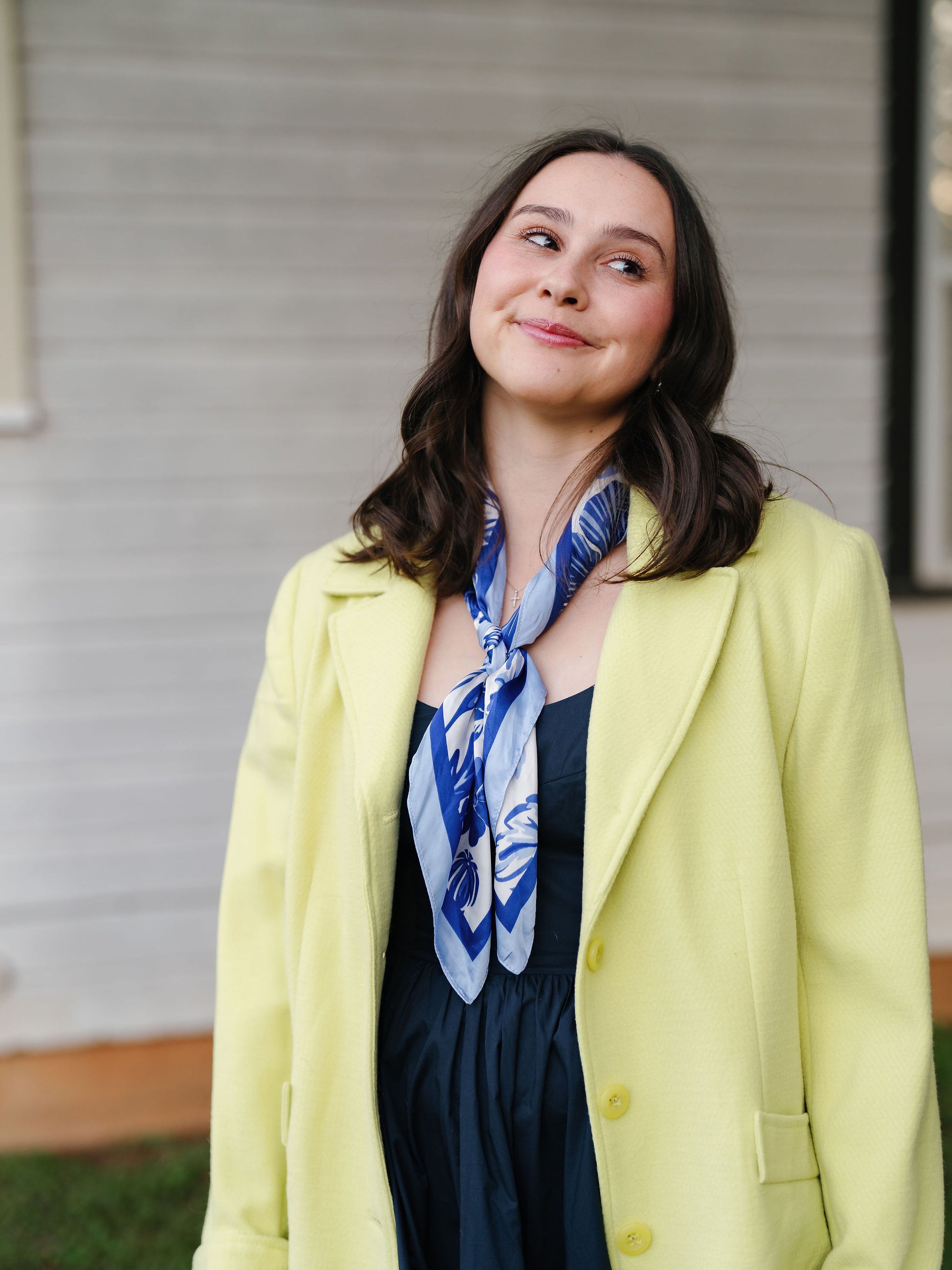 The Amery Dress is a navy dress with puff sleeves and a scoop neckline. Can be dressed up for an event or dressed down for every day wear!