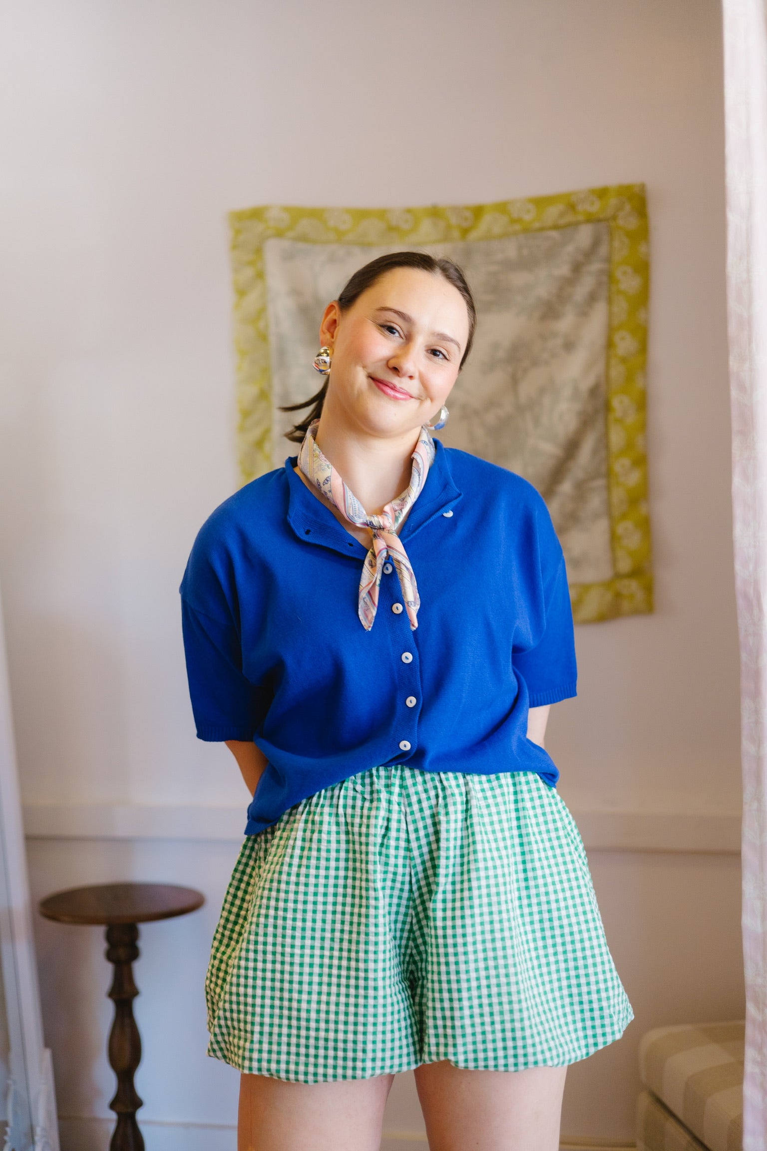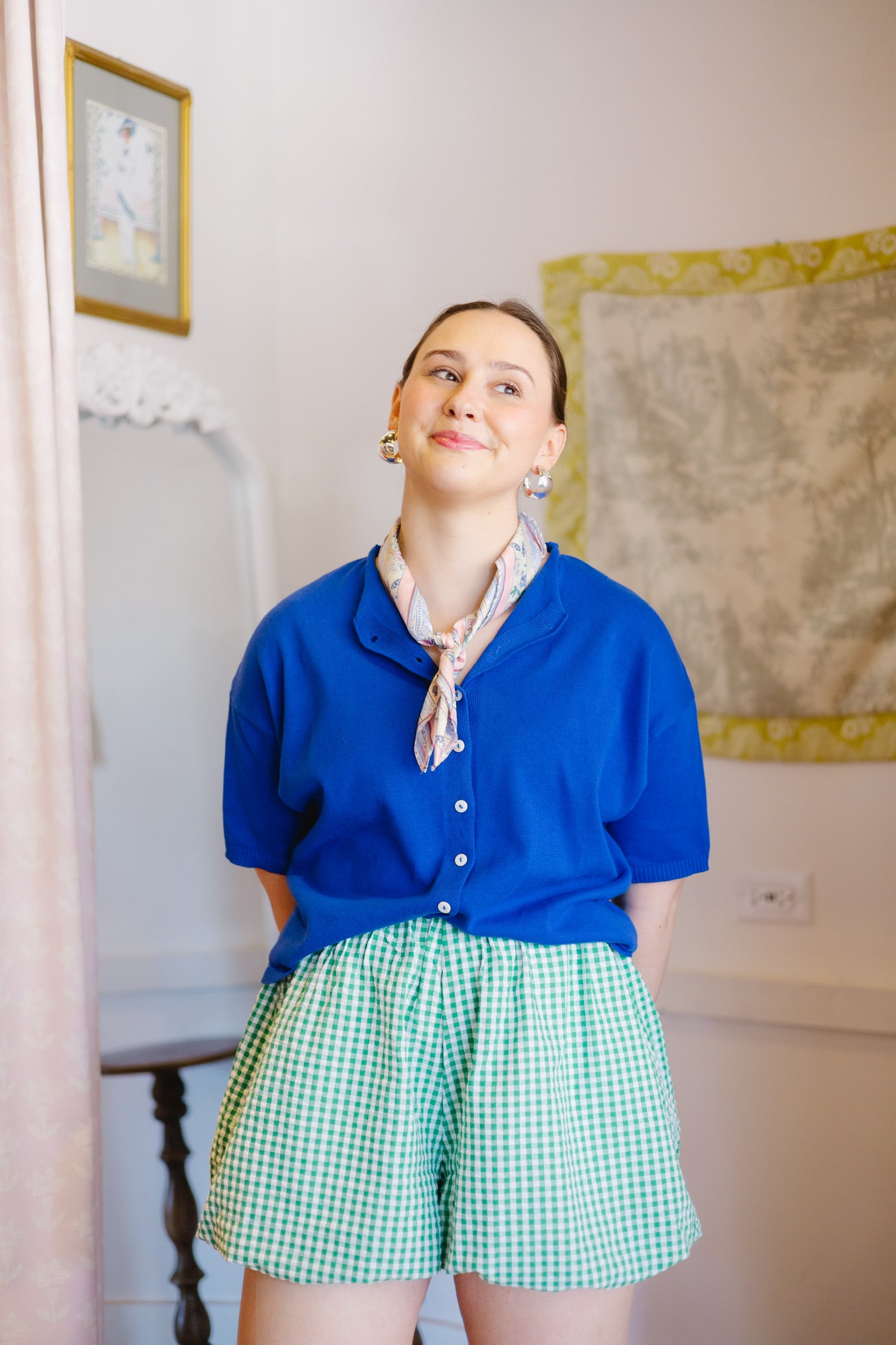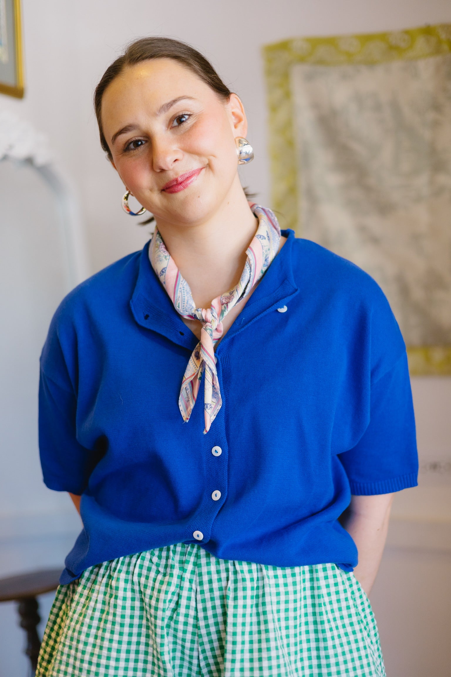 For my simple gals who want a pop of color! The Elysia Sweater top is a lightweight, short sleeve, royal blue top that has the cutest relaxed fit! Dress it up over a dress or dress it down with some athleisure. Fit is true to size!